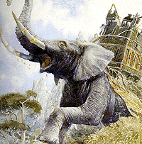 OliphauntIn LotR Sam describes an Oliphaunt as an enormous beast capable of destroying anything that comes in its way. An oliphaunt is actually a common elephant. Also known as Mûmakil. The word "elephant" has transformed into "oliphaunt" through rumours travelling from the south to the north.